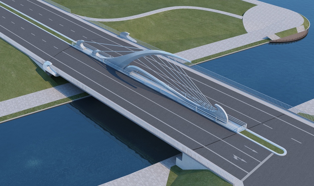 同时,泐影路 (祥祈路-祥泰路)项目包含一座开启式桥梁——三灶港桥,桥梁建成后将成为国内首座机动车通行的平转式开启桥,是一座具有重要意义的标志性桥梁。桥梁采用独塔斜拉式的景观造型方案,通过平转开启满足三灶港内大型游船通航要求。桥梁建成可进一步提升三灶港商业乐园型社区中心的整体品质,为打造三灶港文化创意街区提供有利条件。