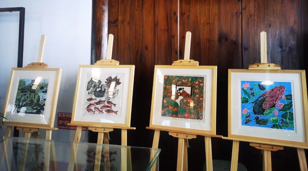走进古朴雅致的朱季恂宅,穿过庭院进入一楼正厅,一股浓浓的书香气扑面而来。环绕中间的长条几案,一幅幅绚丽多彩的小尺幅丝网版画陈列在一个个半人高的画架上,欣赏的时候观众可以凑得更近、看得更细。