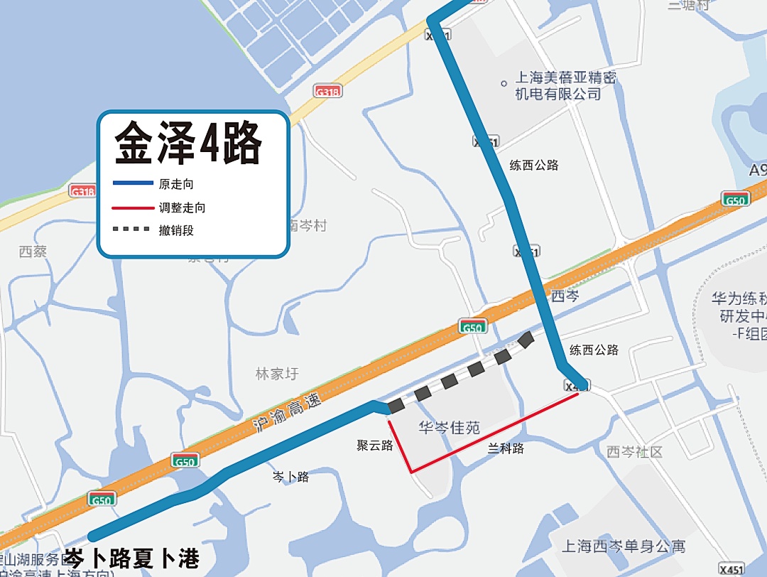 为进一步优化青浦区公交线路走向、方便乘客出行,根据2024年青浦区第一批公交线网调整计划,区建管委计划于4月1日起调整金泽4路线路走向及站点。具体调整如下: