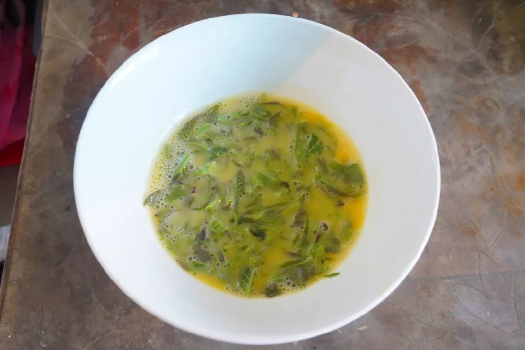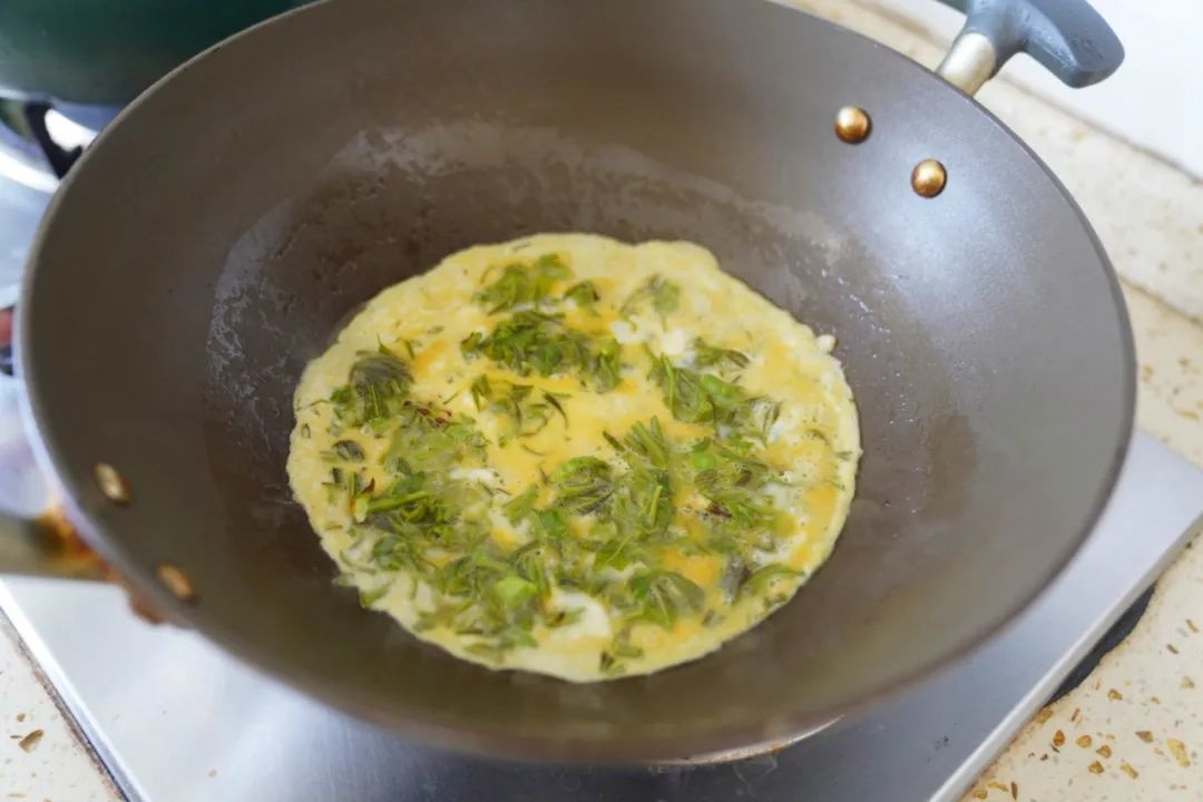 最香的当属香椿炒鸡蛋,先把椿芽放入沸水焯一下(可除去三分之二的亚硝酸盐),待褐色褪去,变成浅绿,过一下凉水,挤干水分,然后用刀切碎,放在盘中备用。随后把鸡蛋打入碗里,加入适量的盐,再把鸡蛋充分搅散,将鸡蛋液倒入香椿碗中搅拌均匀。锅中倒入少许食用油,油热后倒入香椿鸡蛋液,先让其一面定型,再轻轻翻面,煎至两面熟透方可出锅,那滋味美妙至极。