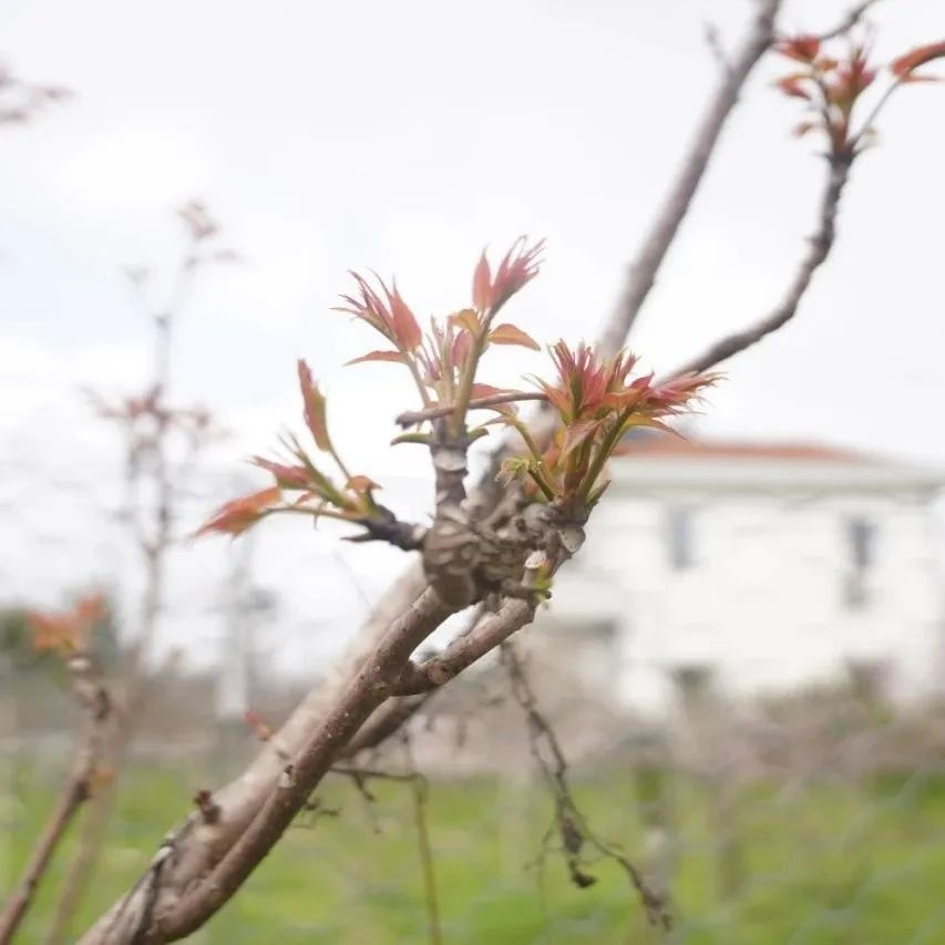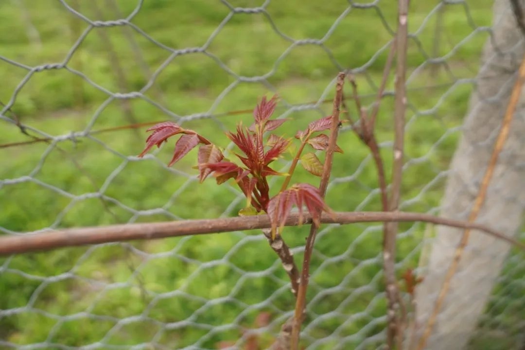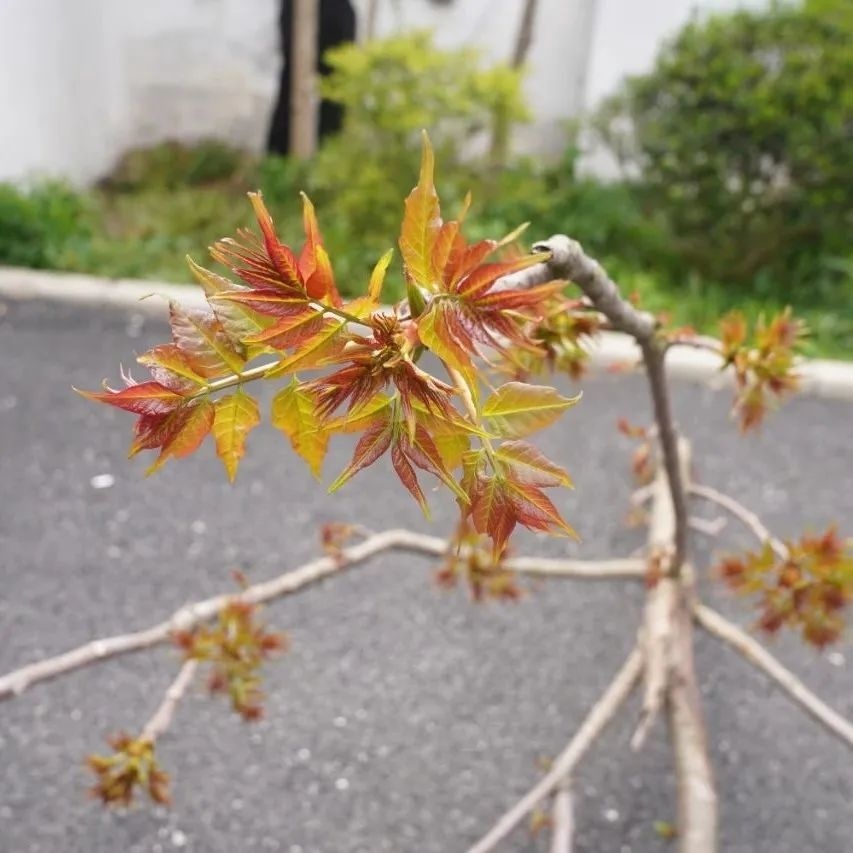 枝干上,一个个嫩芽苞渐渐挣扎开,细小精致的羽状复叶渐次舒展,叶边带着疏离的小锯齿,褐色与绿色交织的椿芽儿争先恐后地成长。