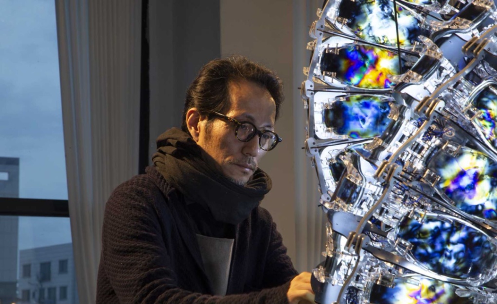 《色度VIII》为金允哲2024年新作,是“色度(Chroma)”系列的第八件,由234个形状、材料各异的单元组成,通过对透明聚合物施加压力产生微妙的形变运动,单元的动态表面闪烁出虹彩般的光芒,仿若巨龙盘踞,链接观者与空间形成“三位一体”般和谐的共构关系。
