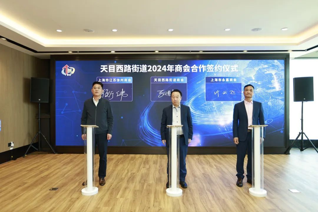 天目西路街道商会、上海江苏徐州商会、上海永嘉商会共同签署商会合作协议,全面、全域推进商会合作,进一步筑巢引凤、聚才汇力,打响“添睦益企”服务品牌。