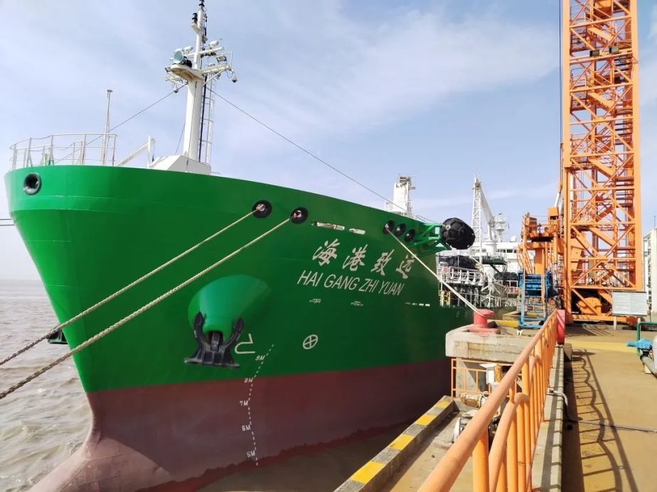 就在今年3月13日,在洋山港海事局远程监控和现场执法人员的守护下,国内首艘投运的甲醇燃料加注船“海港致远”轮在洋山港申港石油码头顺利完成甲醇燃料补给测试。此次“海港致远”轮顺利靠泊完成燃料补给测试,标志着洋山港已具备甲醇燃料补给能力,在港内即可实现甲醇燃料补液,进一步降低了燃料加注公司的运行成本。