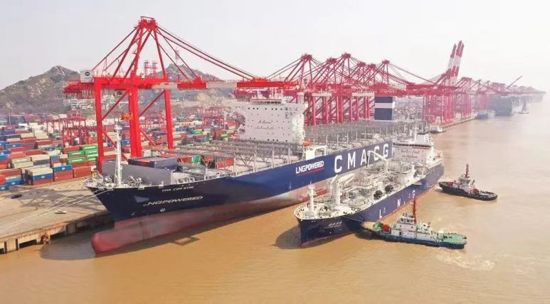 2022年3月,我国首单国际航行船舶保税LNG加注服务在洋山港顺利完成。这标志着上海港成为全国首个、全球第三个拥有“船到船”同步加注保税LNG服务能力的港口。