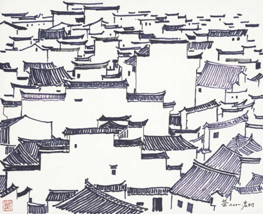 吴冠中《安徽宏村》 37x46厘米 素描 2001年 中华艺术宫(上海美术馆)藏