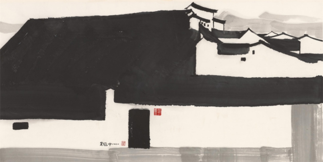 吴冠中《大宅》 70×140厘米 中国画 2001年 中华艺术宫(上海美术馆)藏