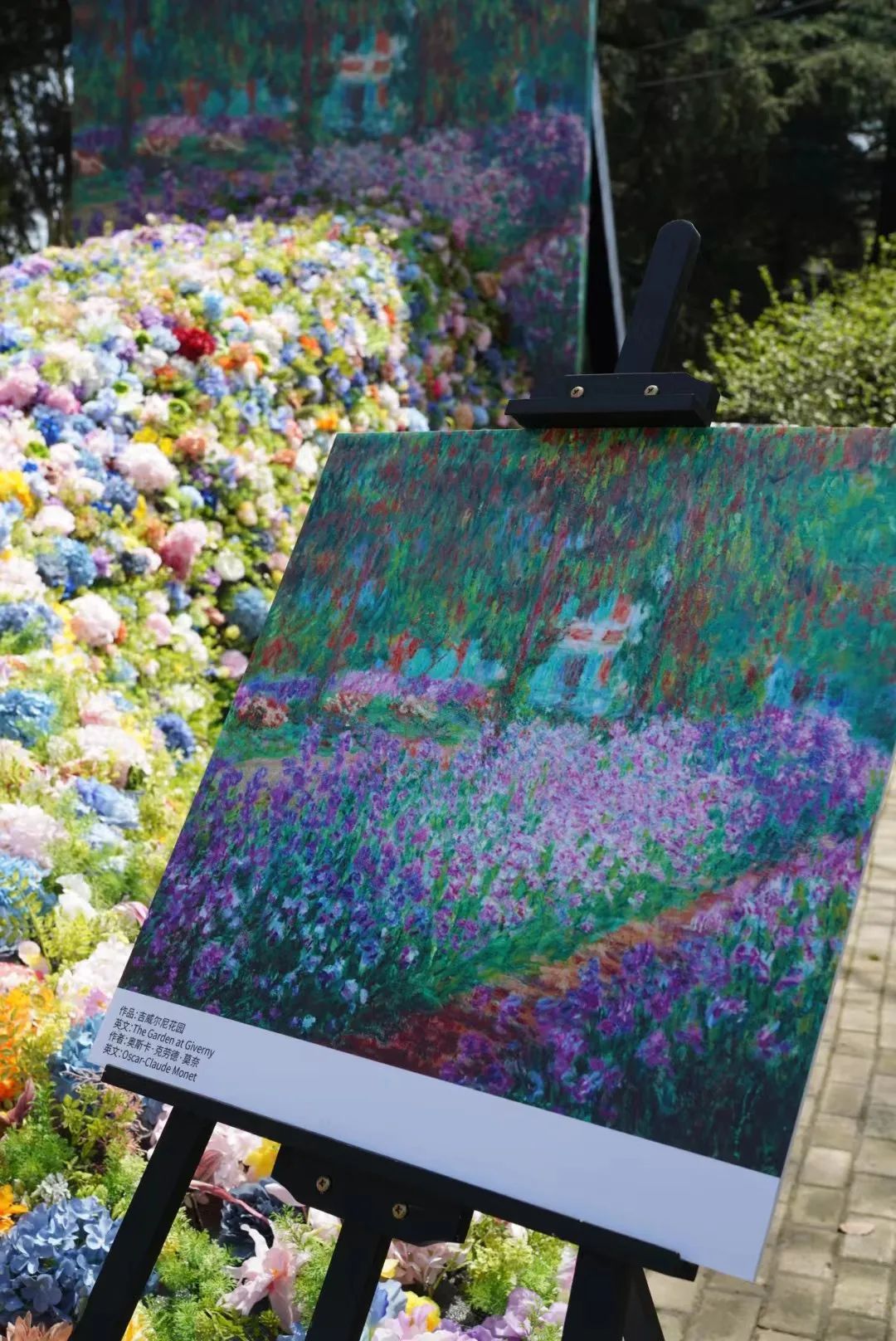 “莫奈花梯”位于香樟广场区域,整体以莫奈的作品《吉威尔尼花园》油画作品为核心,将画作用隐形支架放在空中,并从画中延伸出一条8米长的花带,花带的颜色和花型与油画作品相呼应,宛若春天的百花从画作中流淌出来,形成一条美丽的花梯。
