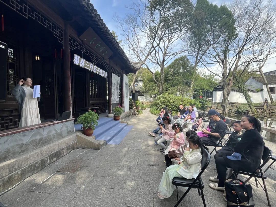 活动伊始,秋霞圃的桃花潭广场上响起一阵悠扬的古琴声,这是“暮春三月亲子赏读会”的开场曲《高山》。琴声如泉水般流淌,仿佛将人带入宁静而深邃的艺术世界。