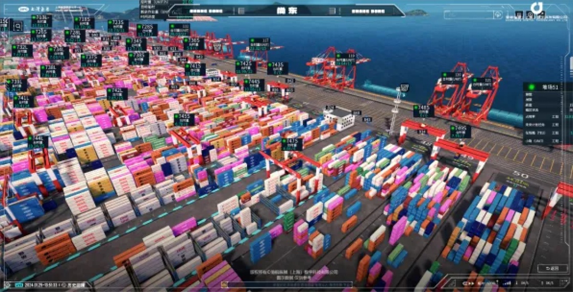 上海港智慧指挥中心融合应用数字孪生、机器视觉、大数据等数字技术,构建数以百万计的智能孪生体。实现港口全域从码头泊位、堆场、道口到桥吊、轨道吊、自动引导车等全要素、全流程一体化实时监控。同时兼具全港生产作业态势推演、运行评估、异常预警等功能,信息更新速度不超过1秒,达到所见即所得的实用效果。