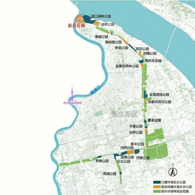 起点公园位于环城绿带浦东段起点位置,东至凌海路,南至凌江路,西至滨江路,北至公安学校,总面积约7.09公顷。本次改造将在保有基础生态服务功能的前提下,通过梳理和优化公园道路系统,塑造主题空间,完善公园配套服务设施,打造环城绿带活力运动休闲公园。