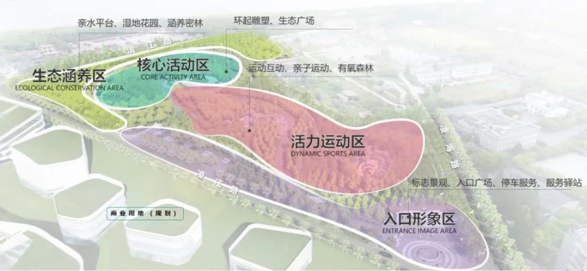 改造后起点公园分为四个功能区,分别是入口形象区、活力运动区、核心活动区和生态涵养区,同时将形成起点广场、亲子运动场、运动秀场、绿环广场、清水平台等多处景观节点。此外,公园改造的配套设施还包括增加服务驿站、管理用房、亭廊小品和休憩空间等,增加基础照明、座椅、垃圾桶、移动厕所,采用适老化铺装、标识、扶手,增加智慧化和急救设施等。