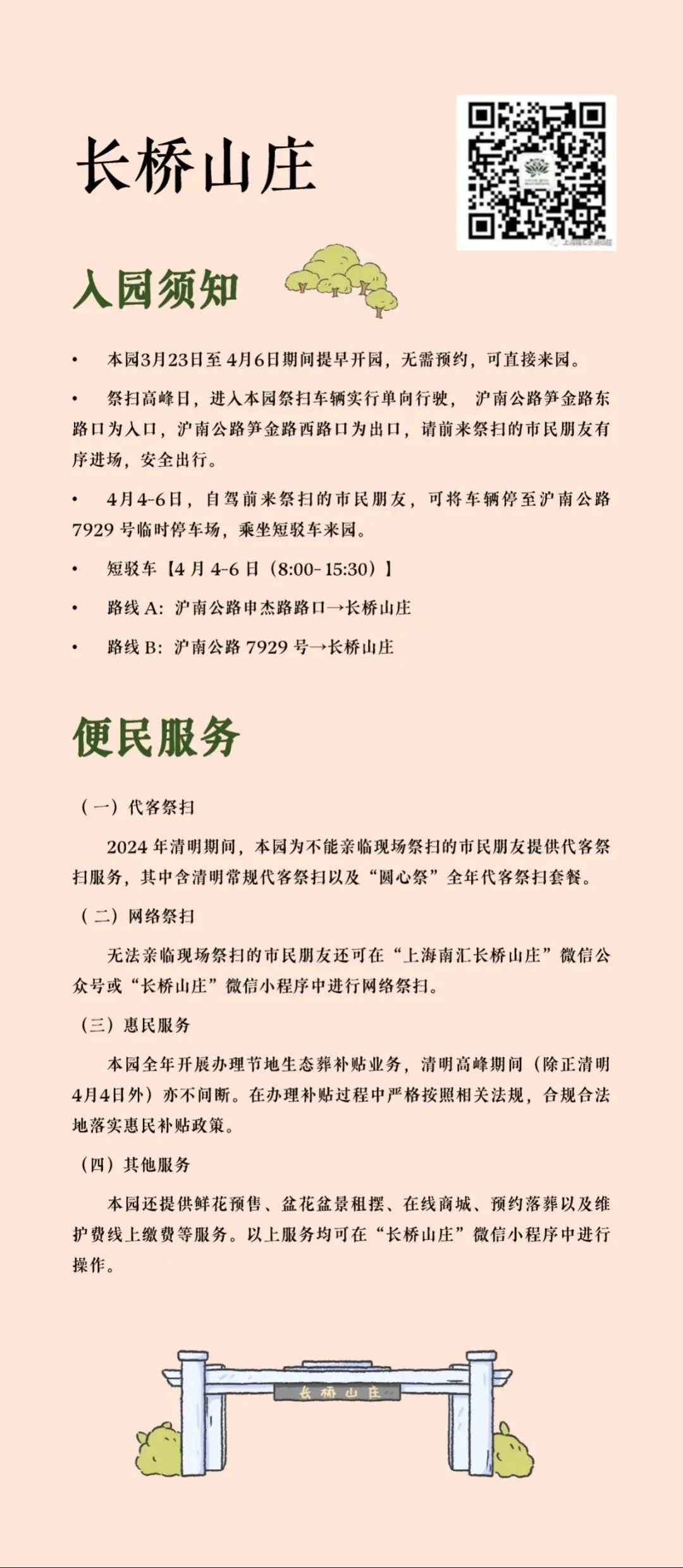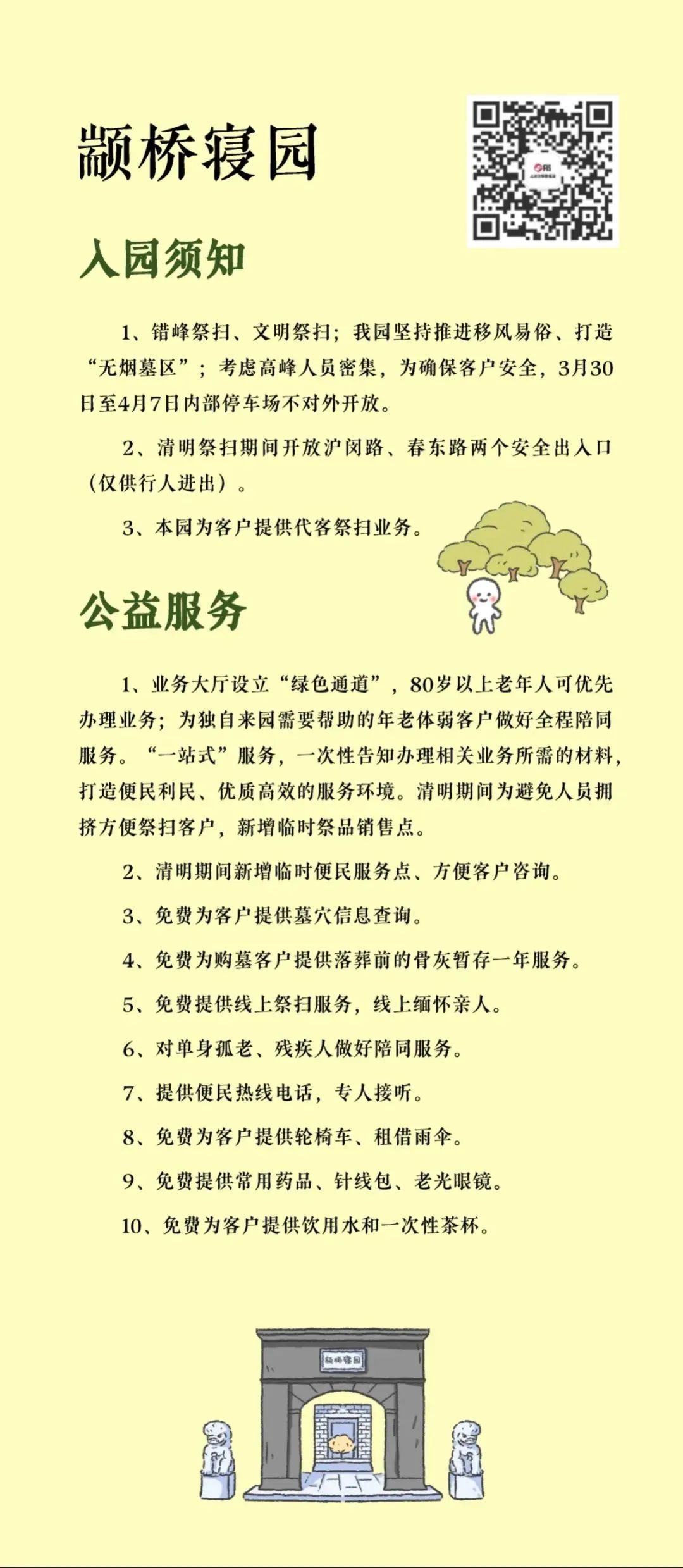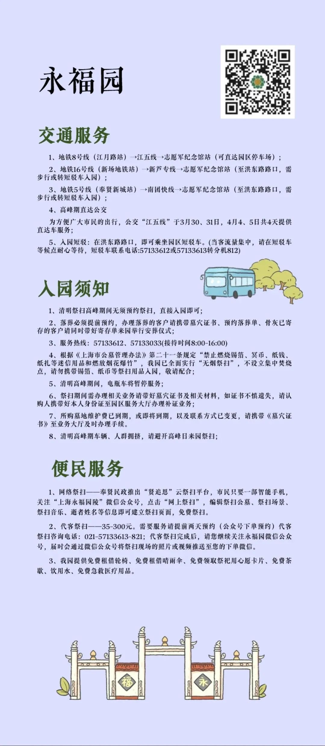 为充分保障市民祭扫的安全性和便利性,在市、区两级主管部门及属地管理部门的指导下,本市各大墓园早做预案、提前部署、形成合力,最大限度确保清明祭扫工作平稳有序进行。