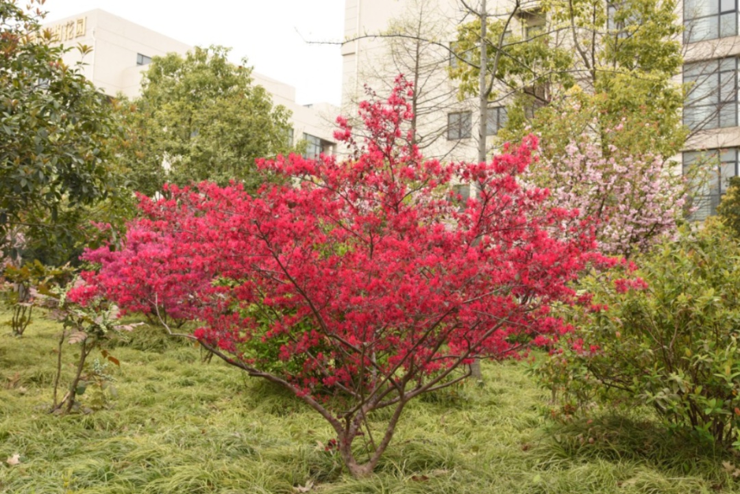 相较于传统绿篱、花球的规则式培育,自然生长的红花檵木更能展现其独特的姿态美,它们或独立成景,或与其他植物相互映衬,共同展现更加真实和生动的自然之美,并且也具有较强的适应性,能够在各种环境条件下生长良好。