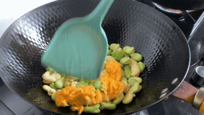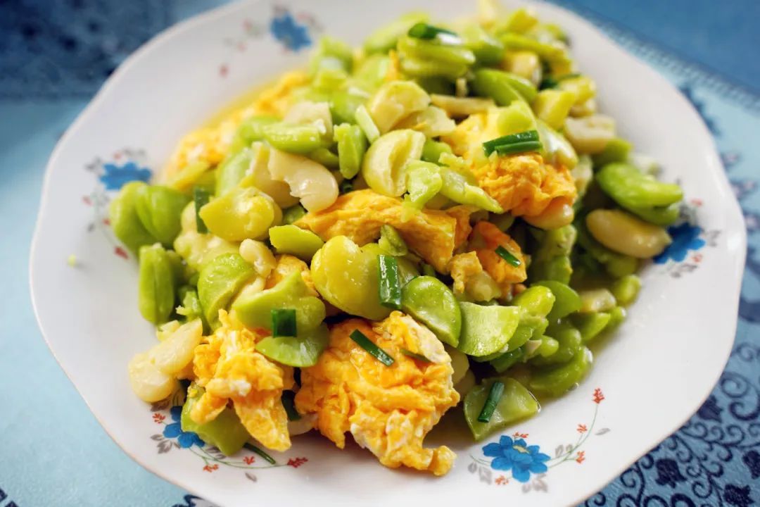 当蚕豆与蛋液相遇,相互交融,彼此衬托,蚕豆在炒制过程中保持了其脆嫩的口感,而金黄的蛋液宛如流动的琥珀在锅中流淌,以其柔滑的质地为这道菜增添了几分生机。