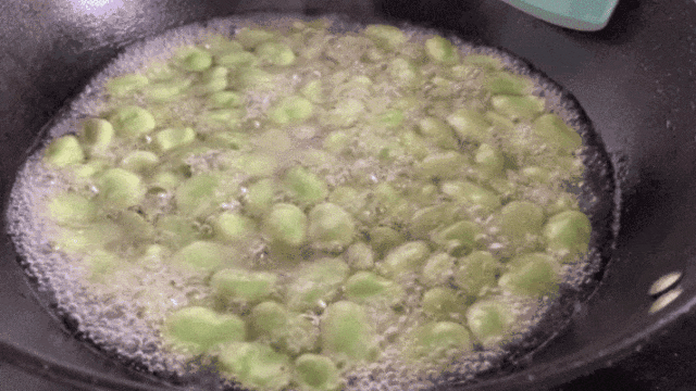 蚕豆被炒得微微裂开,露出里面饱满的豆仁,金黄色的油光在蚕豆的表面流转,为这道菜增添了几分诱人的色泽......