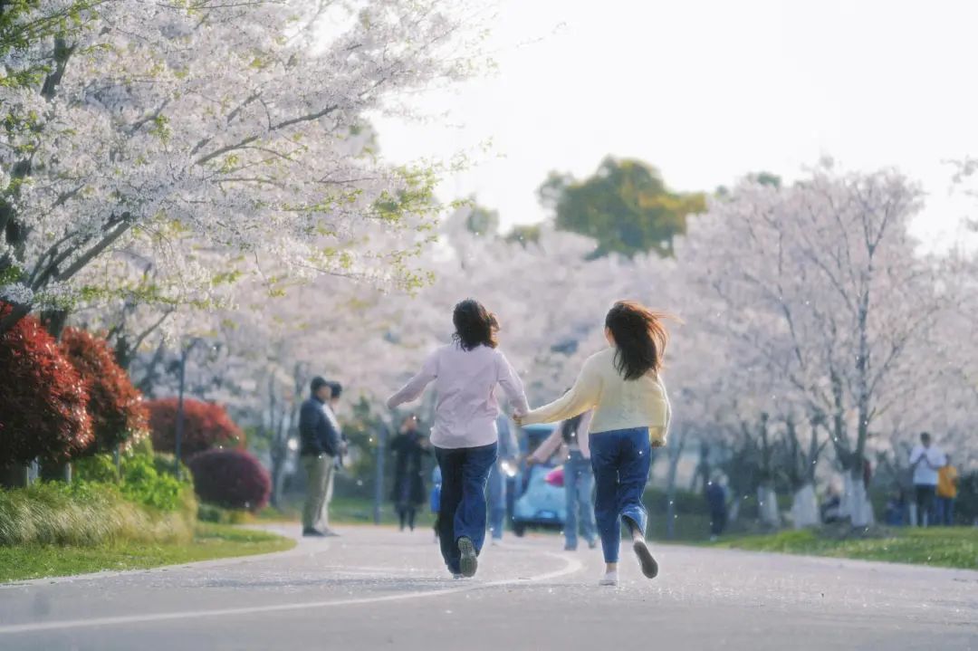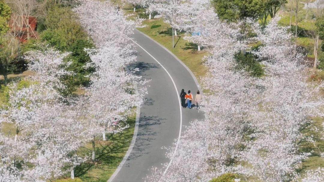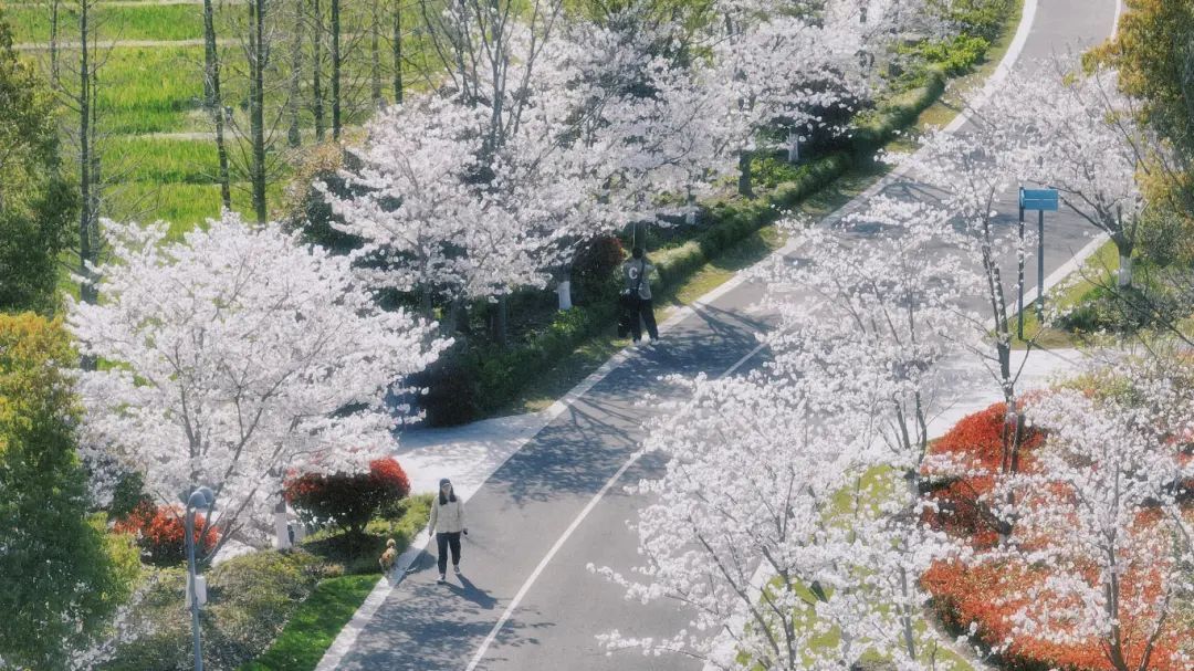 春风和煦,草木萌动。最近,灿烂绽放的樱花为贤城春日带来了“限定美景”。上海之鱼泡泡公园里的千米樱花大道,本周也迎来盛花期。漫天粉雪随风飘落,再配合落花不扫的贴心服务,让这里迅速成为市民游客的热门打卡点。 在上海之鱼公园群,樱花种植品种以粉白色的染井吉野樱为主,不仅数量多,而且范围广,主要分布在泡泡公园、年丰公园和湖心岛公园中。 上海九棵树公园管理有限公司高级工程师张永平介绍道,这些樱花有的小棵三五成群,有的大棵独木成景,而其中最有名的,就是位于泡泡公园的千米樱花大道。如今,大道上的樱花正在盛花期,盛开时繁花似锦,花谢时落英缤纷,是春日里远近闻名的风景线。“千米樱花大道两边种了大概有5000多棵的樱花。” 每年盛花期期间,上海之鱼公园管理方都会在鲜花盛开的区域实行“落花不扫”管理,有时还会设置相应的最佳打卡点,方便游客与美景合影留念。由于樱花观赏期较短,只有大约一周时间,如今樱花已完全盛开,想要观赏的朋友,请不要错过这份春日限定美景。