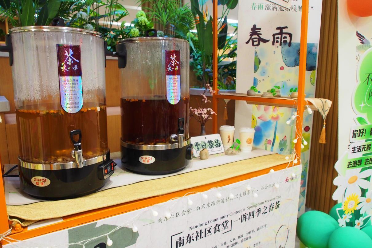 “‘一眸四季’茶饮是基于中医药养生理念以及对当代人健康需求的研究,特别为老年人群和白领群体推出的。每个季节推出新的茶饮时,我们都会邀请社区卫生服务中心的医生进行相应的健康讲座,帮助大家更好地促进自身的健康。”据工作人员介绍,“一眸四季”之春季茶饮共有四款,分别为具有养血滋阴功效的养生茶,具有美白养颜功效的美白茶,具有理气健脾功效的祛湿茶,具有清热养肝的明目茶。“目前,养生茶和美白茶已经开始在工作日午间10:30至14:00限时提供,祛湿茶和明目茶稍后会和大家见面。”