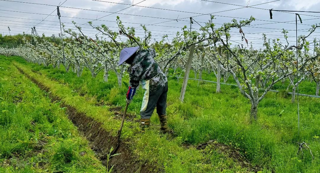 梨园里中,梨花翘首枝头迎风绽放,一簇簇一层层,如雪如玉、洁白无瑕,呈现出“忽如一夜春风来,千树万树梨花开”的景观。梨树下,果农们忙着松土、疏花、清理杂草,呈现出一派繁忙的景象,努力为今年梨果增产增收打下坚实的基础。