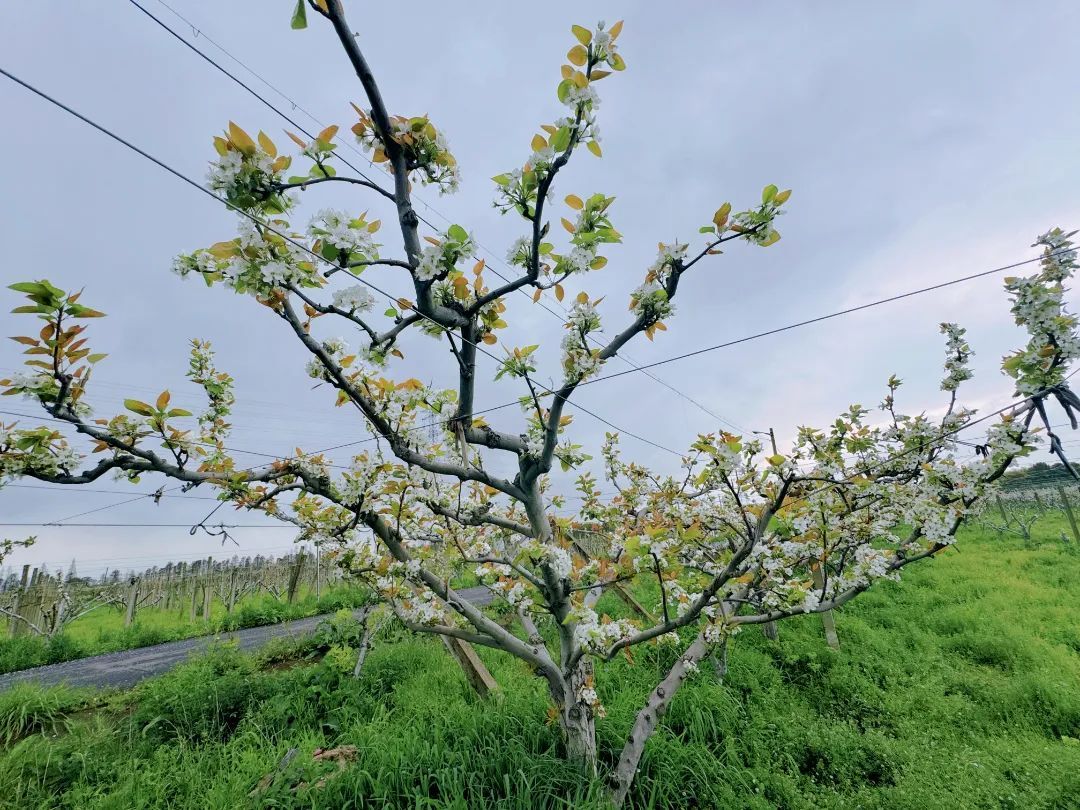 据介绍,该梨园主栽翠冠梨、秋月梨、雪梨等树种,每年3月下旬至4月上旬陆续开花,7月上旬左右果实成熟上市。每到春耕备耕时节,农技人员都会下沉到田间地头,给果农们进行培训,并针对果实进行了改良实验,使梨的口感更佳、价值更高。