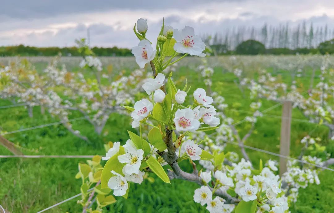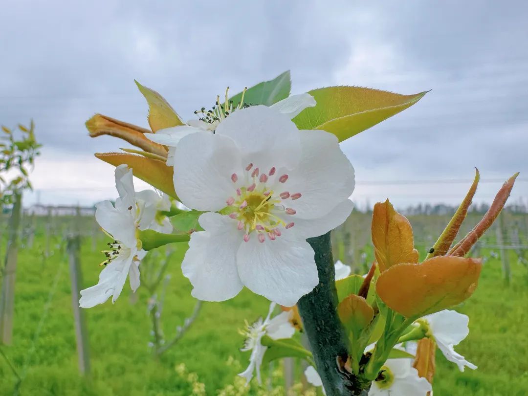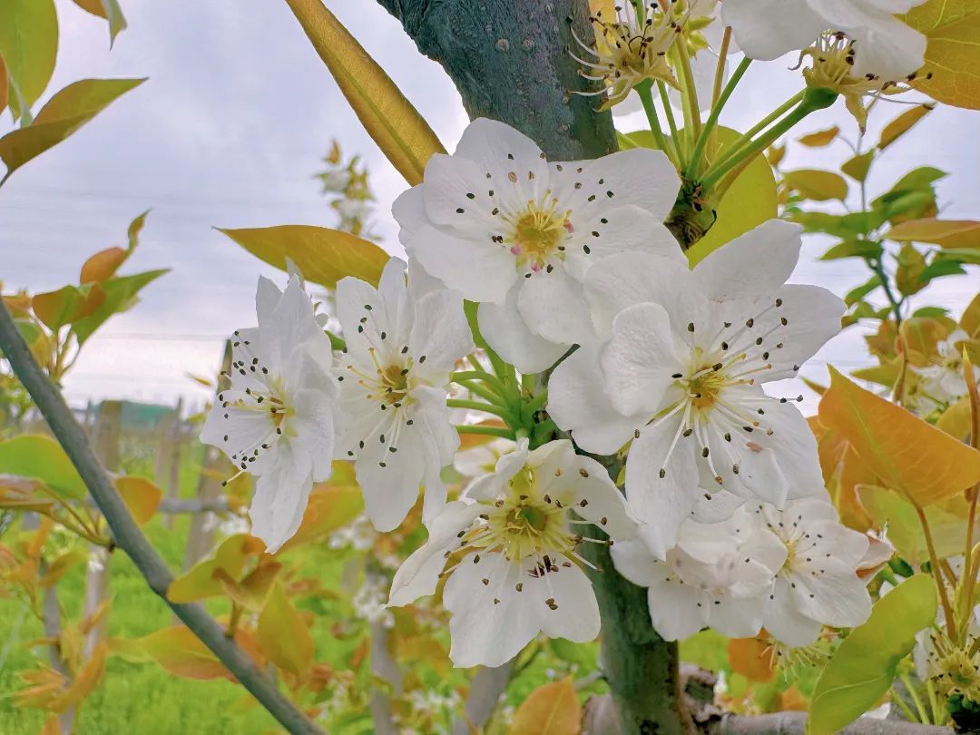 “梨树先开花后长叶,梨花呈伞房花序。这几天是赏花的最好时期,在果园里可以看到,翠冠梨刚刚过了盛花期,进入谢花期,而秋月梨正好是盛花期。”上海市农技中心园艺科农艺师李璇说。