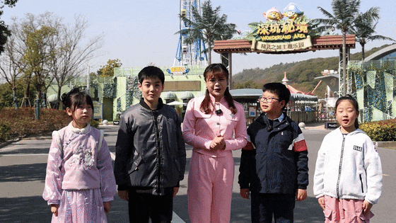 在《童眼看松江》板块,来自九里亭外国语实验学校的同学们前往上海世茂精灵之城主题乐园之深坑秘境,在上海首座崖壁透明玻璃栈道上,完成与深坑酒店合影的挑战,一起奔赴一场春日的欢乐之旅吧!