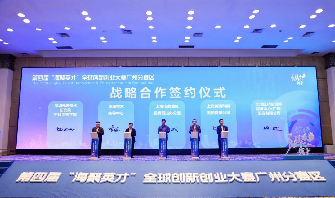 科技创新的加速“奔跑”离不开优质科创生态的浸润滋养。现场,上海黄浦科创集团有限公司负责人与大湾区科技创新服务中心(广州)股份有限公司、华南技术转移中心、深圳中科创科有限公司负责人分别签订战略合作协议,开启沪穗两地产业交流合作新篇章,各方将积极发挥自身优势,共同营造科创协同生态圈,为推动两地人才引领链、技术创新链、产业发展链、金融支持链的深度融合和高效联动聚势赋能。