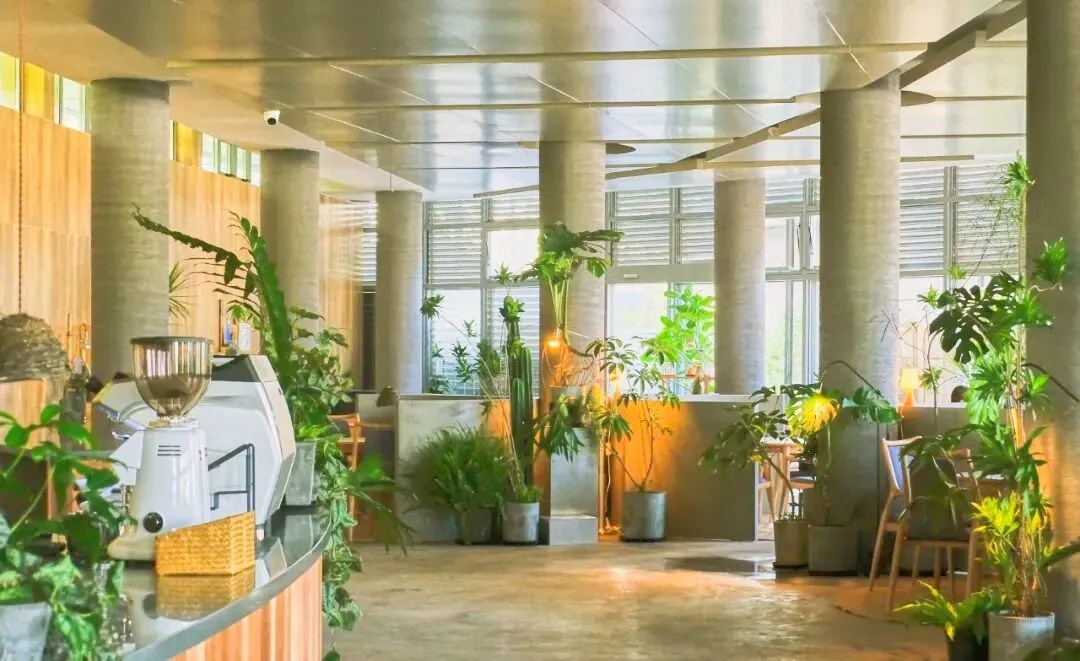 店内环境素雅舒适,原木色的桌椅搭配柔和的灯光,营造出一种安静的氛围。在这里,你可以品尝各式咖啡、甜品、下午茶和西式餐食,享受与自然亲近的同时,也能品味美食、放松身心。