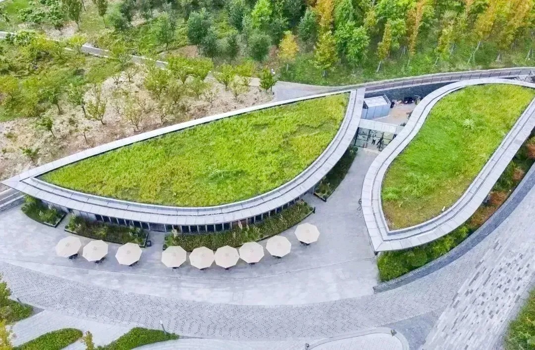 在这片城市绿洲之中,一尺花园为前来游玩的市民提供了一个与自然共生的休闲空间。门店前有绿地、水池和小桥,与周围的自然环境融为一体。