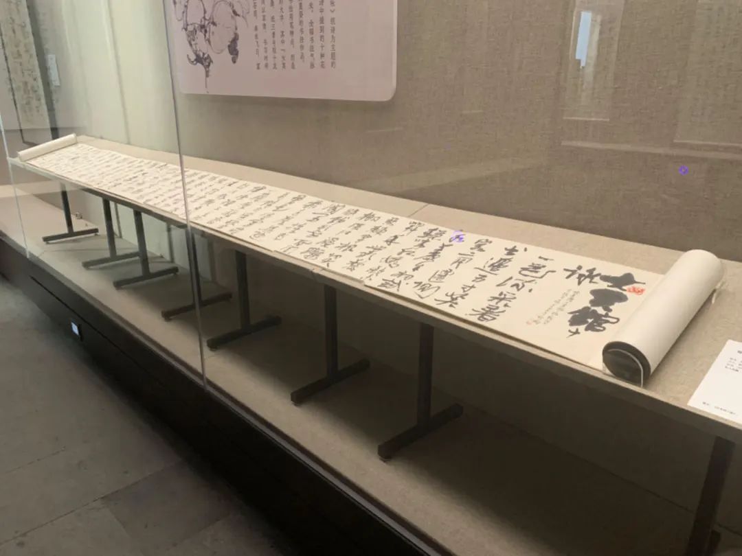 在一系列新亮相的展品中,13米长的《女芙馆十咏》书画手卷很是出挑。程十发艺术馆创作研究部助理馆员、策展人王迟磌介绍,在这件作品中,程十发先生并未沿用徐渭原作中沉着圆浑的书法用笔特点,而是改以特制的“茅龙笔”一气呵成。全幅作品以行书为主,间以草隶,书写时将“不分书”的理念贯穿始终,字里行间笔触苍涩,牵丝飞白,兼容了音乐性与绘画性。