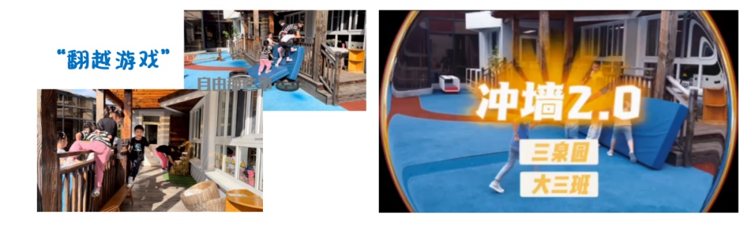 于是,一场“翻越”开启了,他们想办法用垫子、轮胎等道具搭建了一个可爬行的坡,齐心协力完成了这项自己制定的任务。