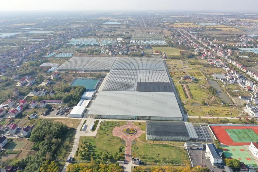 从空中俯瞰上海崇明智慧生态花卉园