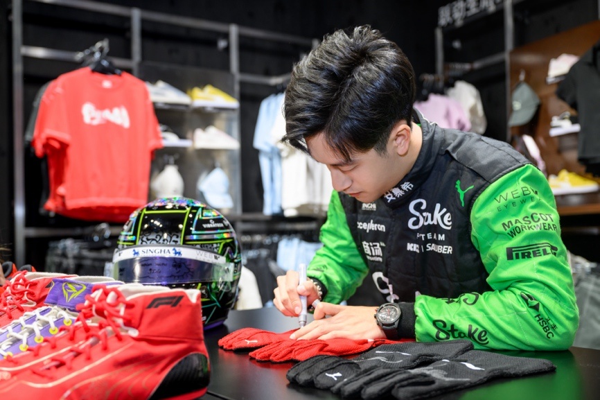而后,周冠宇化身PUMA“一日站长”, 穿梭至PUMA品牌快闪体验店。周冠宇表示:“赛车运动和潮流时尚都是我热爱的领域,非常开心今天作为PUMA‘一日站长’来到这个快闪体验店,感受到了PUMA的赛车与潮流兼备的基因,也希望大家和我一样,无论在赛道内外,都可以开启属于自己的‘英雄时刻’。”