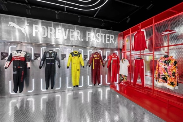 同时,PUMA多元化的赛车系列产品也在店内集中呈现,包括延续纯正街头文化精神的Motorsports艺术家合作灵感系列,以及特别展出的与顶级车队和国际赛事的系列合作款。
