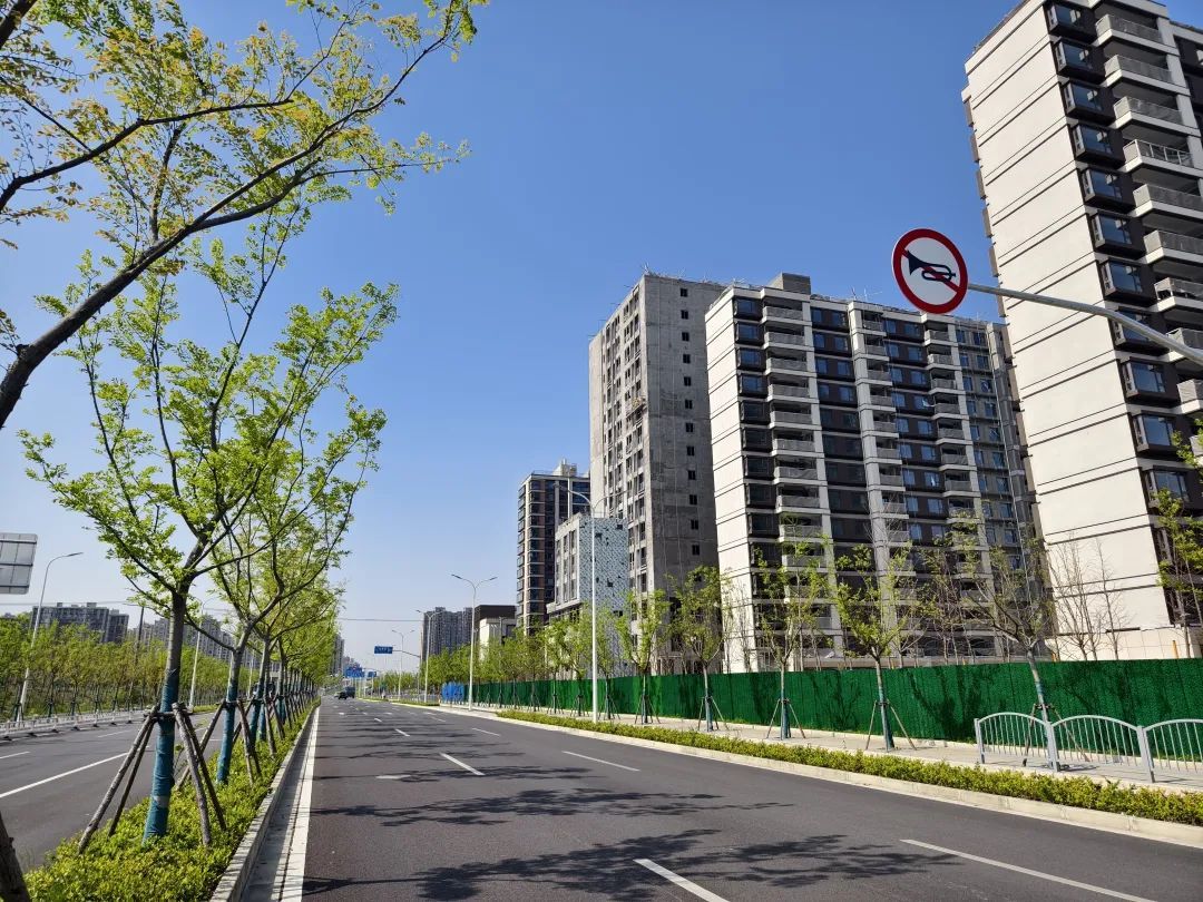 在友谊路北侧,杨泰路北段属于新建道路,去年9月份建成通车,它的东侧有新建的商品房小区,行道树和中央绿化隔离带的树种以朴树为主,虽然是去年第三季度新栽的,但长势良好,目前已经生长出翠绿色的枝叶,在“人间四月天”继续讲述春天的故事。