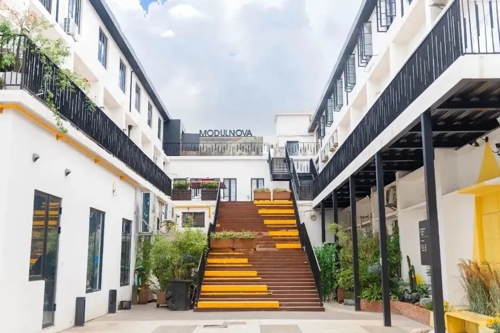 这十多年来,79意库一直在利用文创元素进行微更新。2022年,79意库的入口处就化身一片蓝色海洋,上面漂着一艘粉色小船,一旁立着“我在79意库很想你”的路牌,在蓝天白云映照下显得十分浪漫。在2号楼、3号楼之间有一面日光INS墙,阳光以具象的形式出现在墙面,前面是野蛮生长的稻穗与芦苇,活力感满满。此外还有旋转楼梯、精灵甬道等,园区的角角落落都是出片圣地,让这个文创园区也越来越“出圈”。