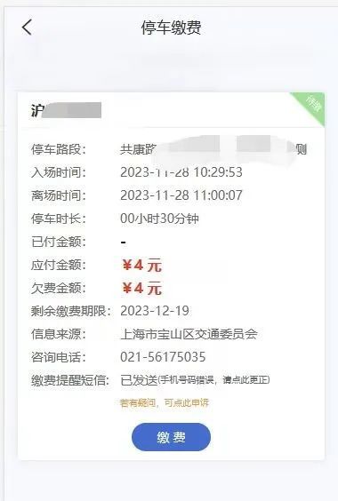 为避免待缴费逾期未缴成为欠费,对于离场后72小时仍未收到缴费提醒短信的,请停车人主动通过“上海停车”APP在线查询支付,或者在全市任一收费道路停车场联系收费管理员使用手持收费设备查询支付。停车人通过“上海停车”APP在线查询支付时,可以在停车缴费查询界面看到待缴停车费详情、停车进出场照片以及缴费提醒短信发送情况