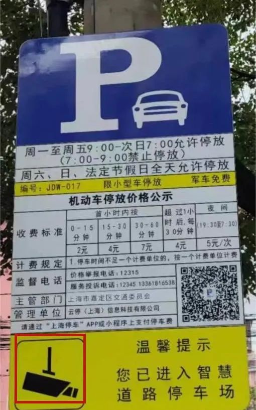 本市合法设置的收费道路停车场均在起止停车位两端各设置一块道路停车收费标志牌,标注允许停放时间、路段编号、收费标准、计费规定、监督电话、管理单位等信息。