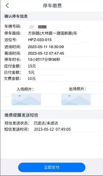 温馨提示:停车人应在完成支付后5分钟内及时驶离,以避免产生新的计费。