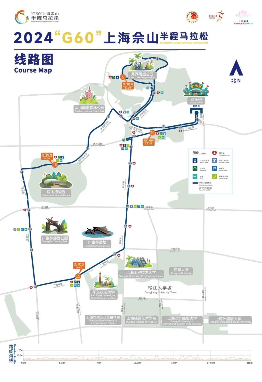 本次佘山半马的比赛线路从上海欢乐谷出发,途经佘山国家森林公园、广富林郊野公园、广富林文化遗址、辰山植物园、松江大学城等景点地标,一路展现城市风采,为选手们创造愉悦的运动环境。