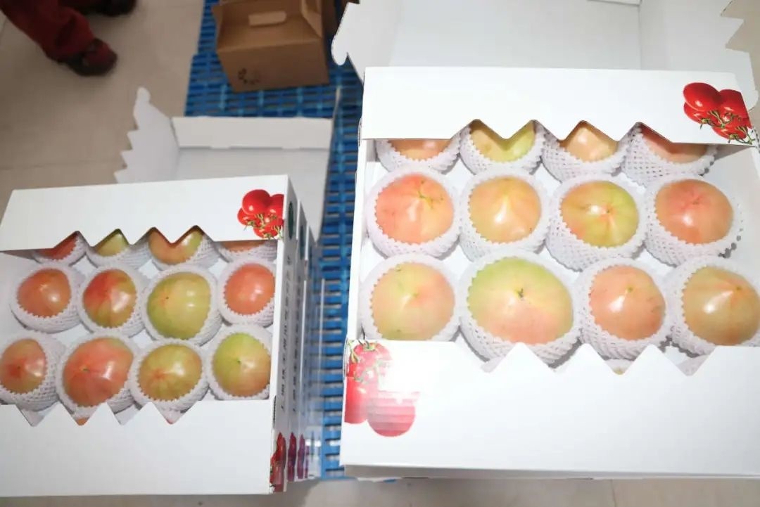 眼下,成熟的“桃太郎”番茄采摘数量有限,零售价格也较高。“目前我们是分装成礼盒销售,预计后续“桃太郎”番茄集中上市后,零售价格在10到15元每斤。”姚爱军表示。