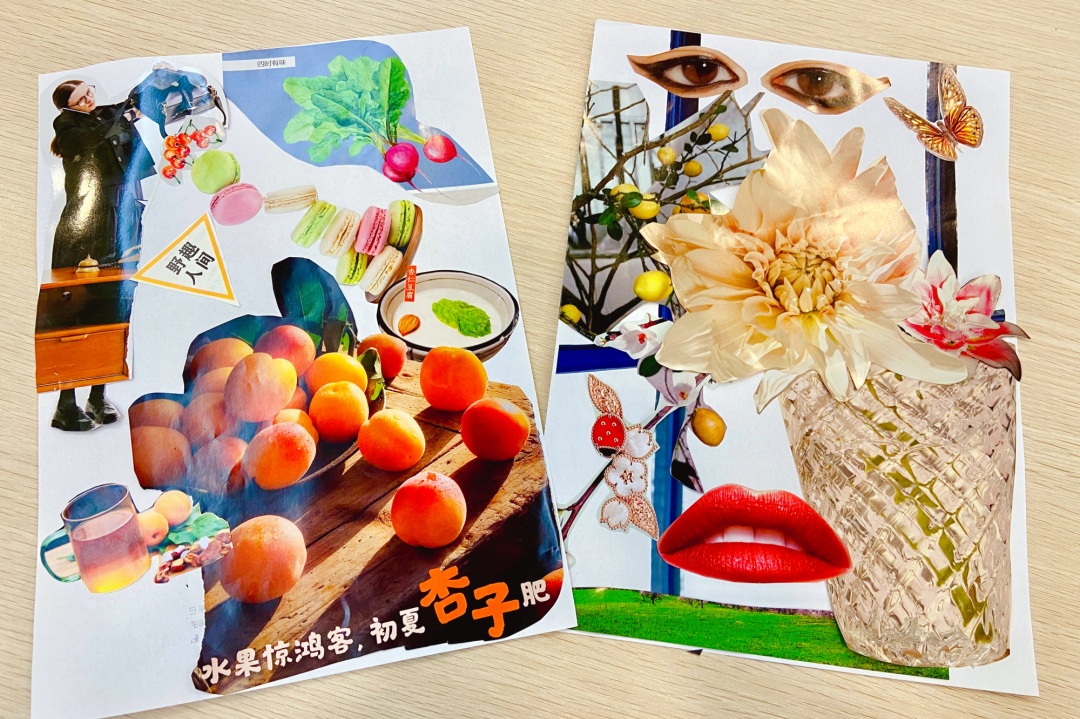 “往事不复返,我们要对未来生活有所期待。”在刘女士的拼贴画中,有“别想太多,做了再说”这样的文字表达,还有被爱心环绕的一家三口、远处的山水美景以及近处的生活小景。易女士的拼贴画则呈现出一片瓜果蔬菜的丰收景象,画面清新而富有生机,她表示:“春天里万物生长,生活中充满了小确幸,看到这些瓜果我感到很开心。”在张女士的拼贴画中,瑜伽锻炼的场景与“感知力与美”的文字相得益彰。“我认为女性可以通过运动释放内心的压力,活出自我的风采。” “拼贴画结合了绘画和拼贴的元素,通过收集和组合图像、文字和材料来表达情感,将不好的情绪发泄出来,将美好的感情寄托在其中,可以帮助我们探索内心世界,在非语言的表达中促进情绪调节和内心平衡。”来自世安美儿童与青少年健康发展中心的心理讲师孙琳表示,拼贴画的过程其实也是一个情感流动的过程。它让人们通过内在造像和外在显像,逐渐探寻自己的内心深处,帮助达到一种平和的状态。 记者了解到,此次拼图画艺术疗愈体验作为“午间一小时”楼宇党群服务活动,是宁聚里·华敏翰尊国际大厦党群服务站的特色品牌党建项目。江苏路街道党群服务中心相关负责人表示,将继续以各类活动为载体,搭建起楼宇企业、员工互动交流平台,丰富楼宇员工精神文化生活,不断深化“楼门口”服务体系建设,激发楼宇党建活力。 部分图片来源于江苏路街道 撰稿/摄影:李妍蕾 编辑:李冰倩 责编:王 博 *转载请注明来源于“上海长宁”