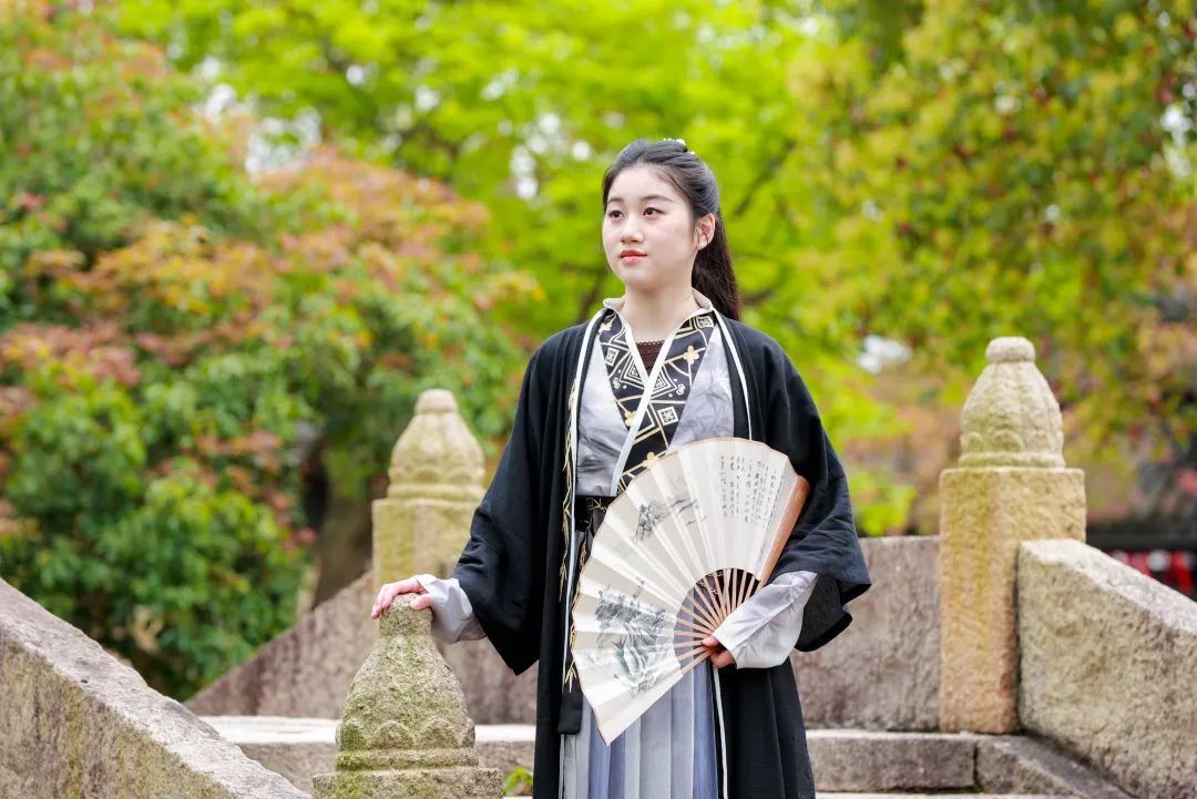 记者在现场看到,不少游客身着飘逸秀巧的华服,或手持团扇,或翻阅书卷,尽情展现中国传统服饰的古典与灵动。