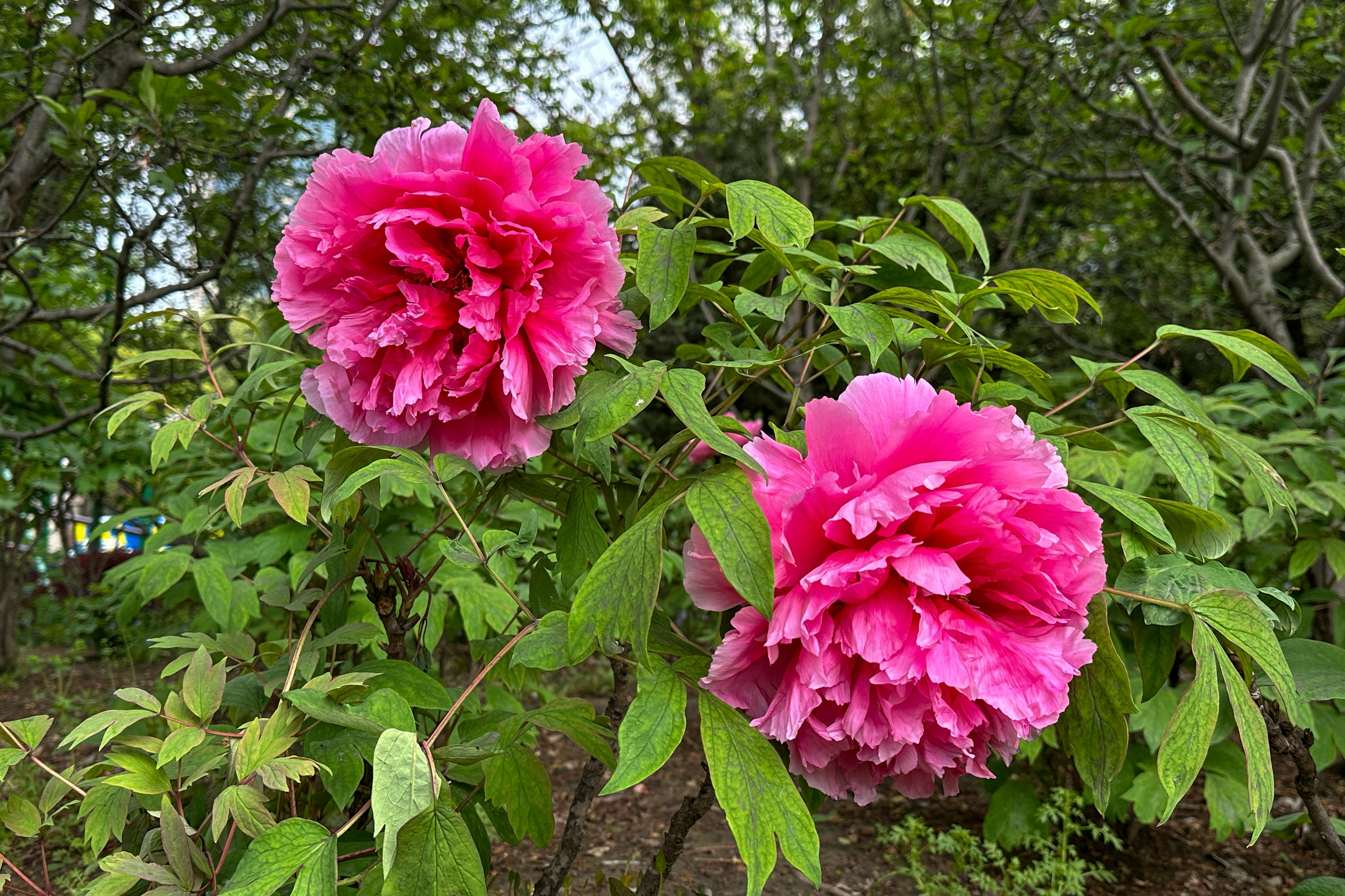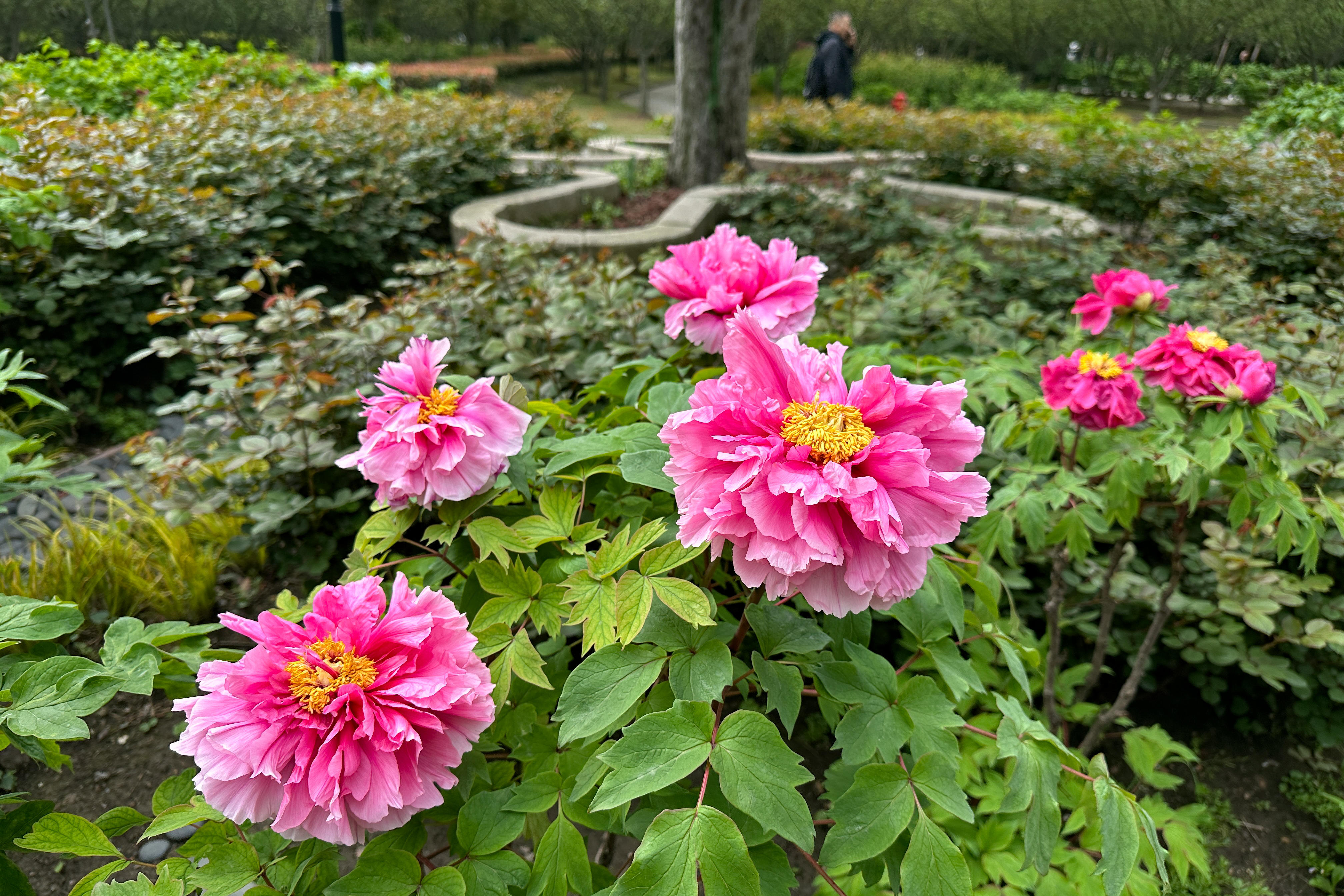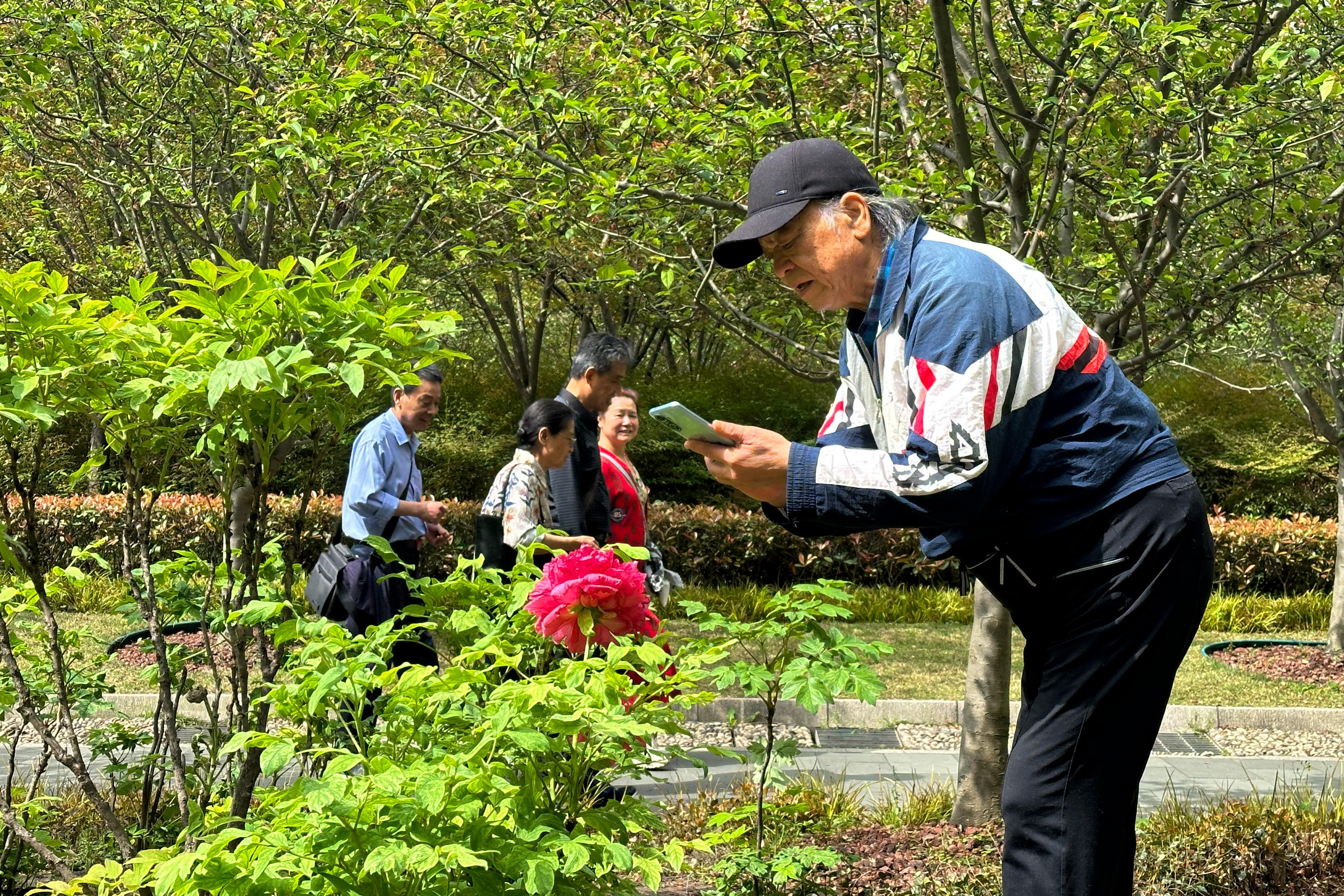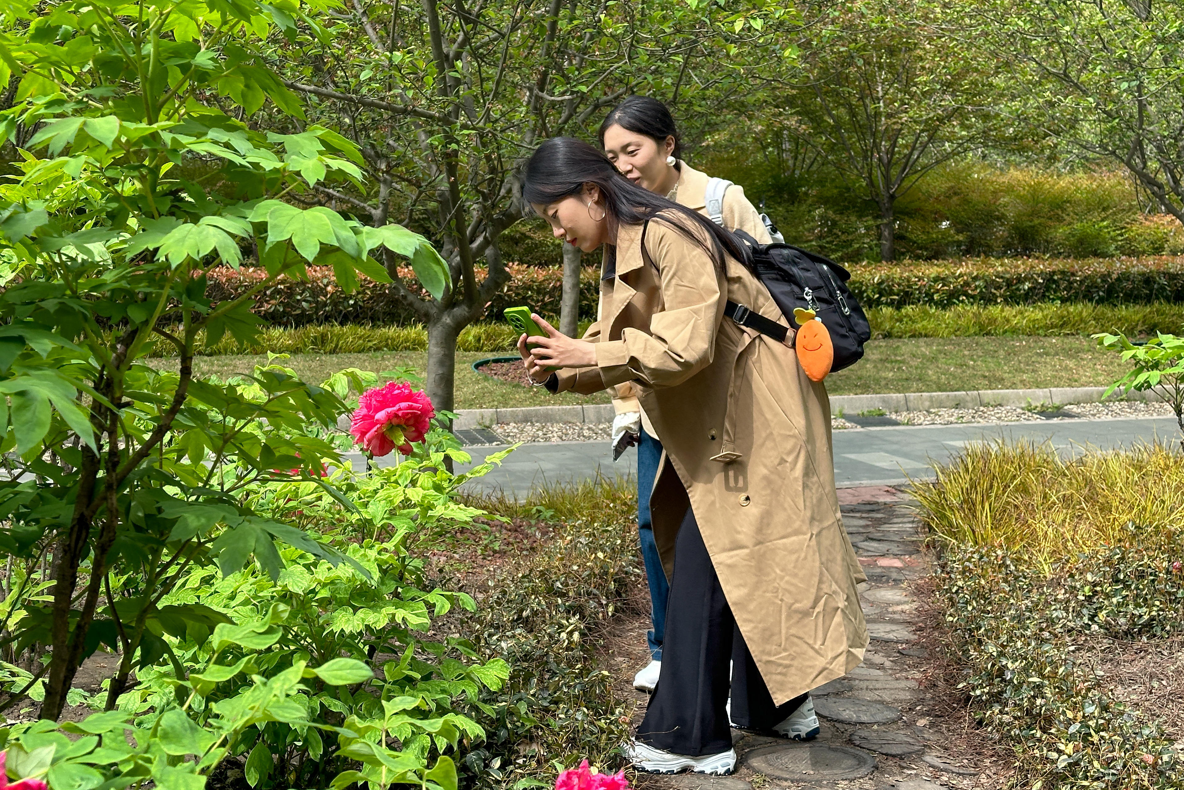 今年,人民公园牡丹园内的千余株牡丹盛开,与海棠花交相辉映,争奇斗艳。这些牡丹中,有些品种已经进入盛花期,而有些品种则还只是花苞,这样赏花期可以维持一段时间。其中,珍稀品种的牡丹更是受到游客们的青睐,成为热门的拍照打卡点。