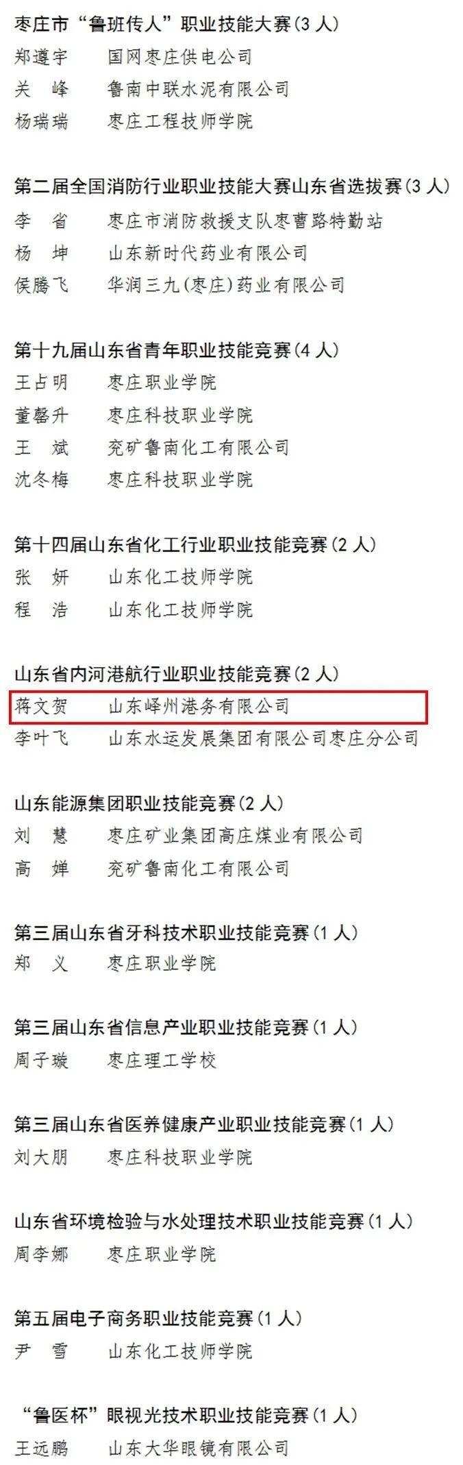 枣庄市峄城区1名高技能人才荣获