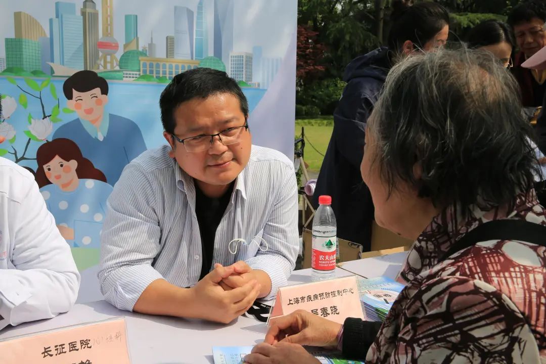 本次活动特别邀请了瑞金医院呼吸科戴然然副主任医师、中山医院神经内科张颖影教授、12320热线专家程月华副主任医师、市疾控中心吴春晓副主任医师、长征医院医学心理科李冠雄主治医师5位专家坐镇咨询台,为居民提供义诊和健康相关知识解答,吸引了众多居民前来。