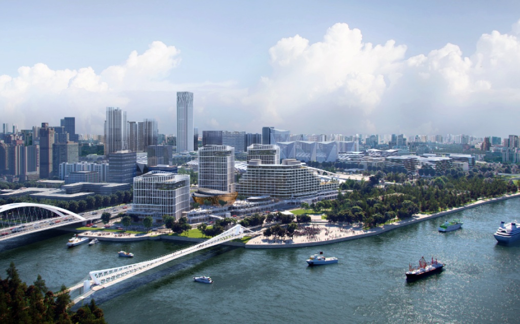 陆家嘴集团项目一部总经理金熙介绍,“前滩源”于2020年底开工,计划2024年底全部竣工,KPF建筑设计事务所和同济大学建筑设计研究院结合项目临水的位置特点,打造了柔和圆润的建筑形态。