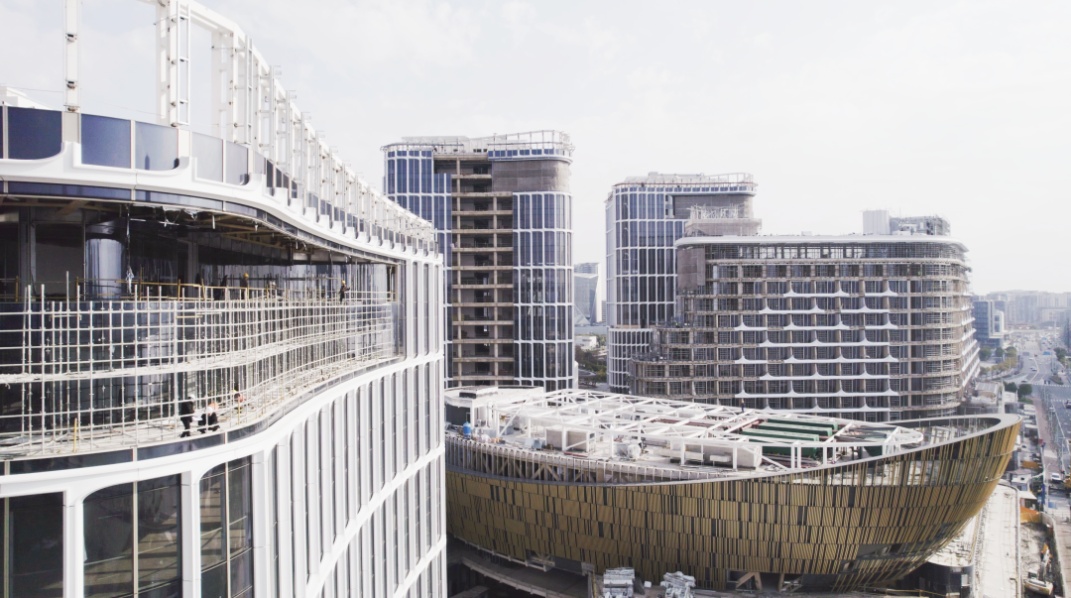 1栋10层办公楼和2栋17层办公楼也进入了幕墙安装阶段,简约灵活的外立面线条使建筑看起来充满生机。