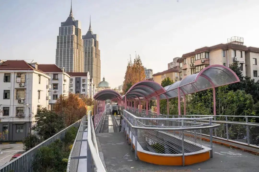 一侧是隔着防汛墙的苏州河,一侧是华东政法大学校园,由慢行步道串联的滨水空间是多元、活力、共享的“后花园”,同时也是网红拍照打卡地。