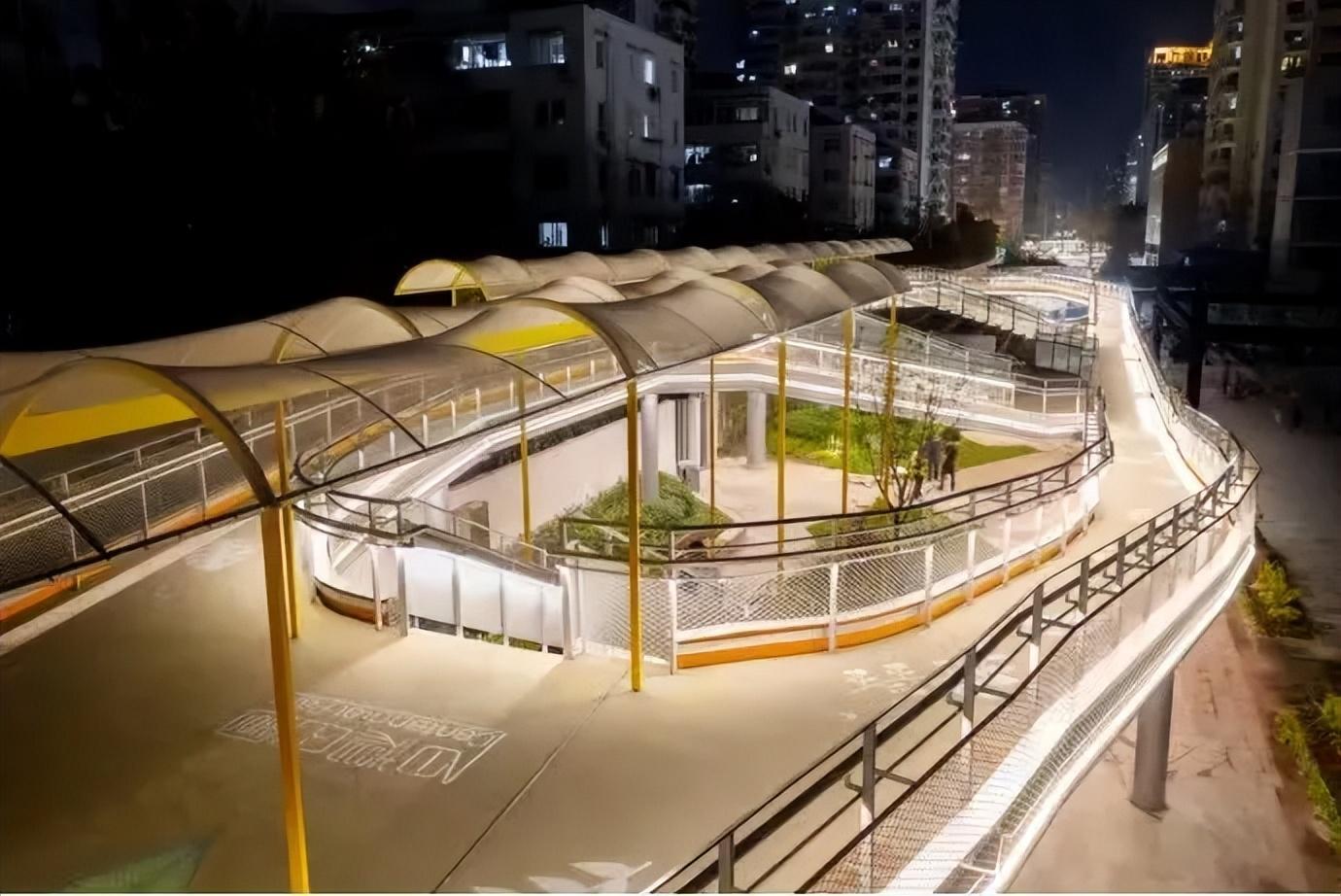 百禧公园分为上、中、下三层结构,每一层都可以收获不同的景观视角。该公园集艺术展陈、休憩娱乐、咖啡驿站、运动健身、梧桐市集、数字生活等功能于一体。